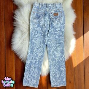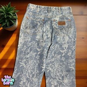 A great pair of Wrangler jeans in size 28x29. Timeless bootcut style in blue denim with Wrangler branding patch. Inside tag dated October 27, 2022, style code 14436.