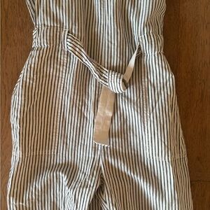 Rag & Bone Ellen Stripe Linen Cotton Blend Belted Jumpsuit XS size 2/4