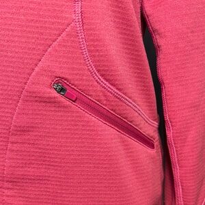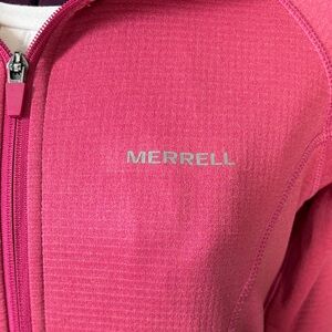 Excellent condition!! Bright pink lightweight athletic jacket by Merrell. Features full zip and side pockets and Selectwick. Measurements are approximate and are taken laying flat.