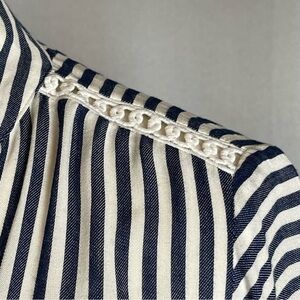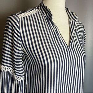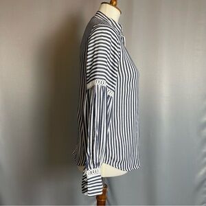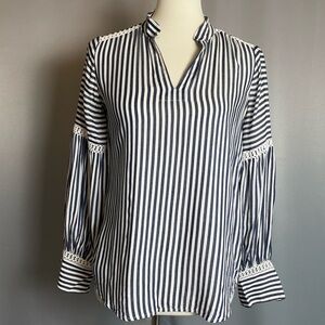 Ann Taylor Navy White Striped Balloon Sleeve Top Blouse - Size XXSP