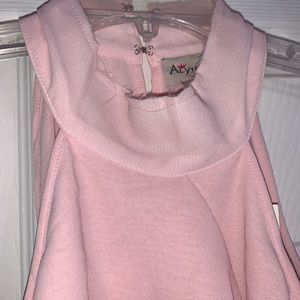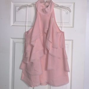 Alythea Soft Pink Mock Neck Ruffled Frayed Edging Sleeveless Top NWT