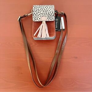 Soruka NWT Gia Leather Crossbody Phone Bag Terracotta Animal Print Tassel Boho