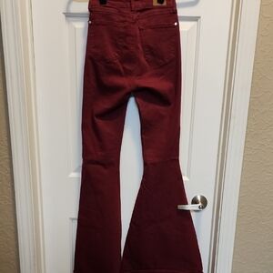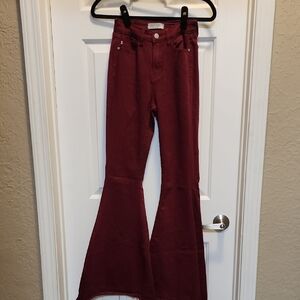 Chic boot cut jeans by Judy Blue. Elegant burgundy shade. Ideal for everyday style. extra wide jean bottoms
