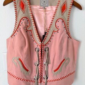 Double D Ranch Night Hearding Jacket Black and Cream Leather Jacket with Fringe