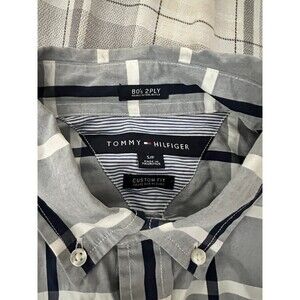 Tommy Hilfiger Shirt Men’s Small, Plaid Gray White Navy Custom Fit Striped