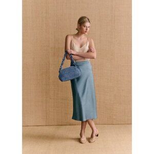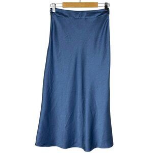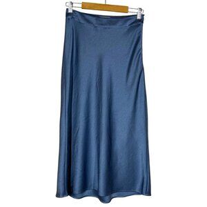 Sezane Sandy Midi Skirt Womens Size 36 US 4 Ice Blue Satin Minimalist Parisian