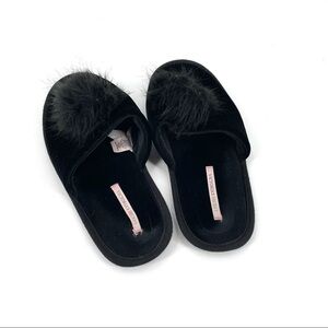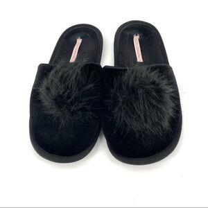 Victoria’s Secret Pom Pom Black Slip On Preppy Boho Cottage House Slipper