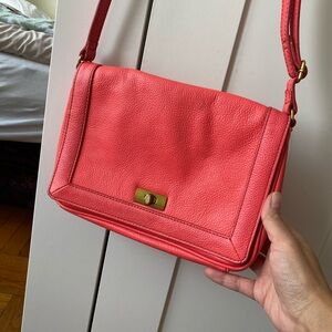 Stylish coral crossbody bag perfect for any occasion. Features a sleek design with a secure clasp.