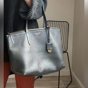 Elegant navy leather tote bag perfect for everyday use. Features a spacious interior and durable design.