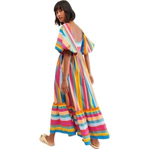 Step into style with this vibrant striped maxi dress. Featuring a playful mix of colors, it's perfect for making a statement.