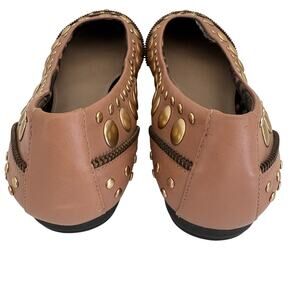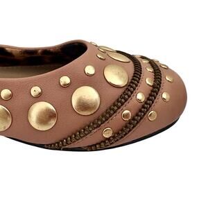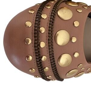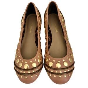 Arturo Chiang Studded Tan Leather Ballet Flats Shoes w/ Zipper Trim