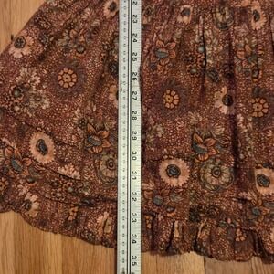 Ulla Johnson floral print mini dress with a round, gathered neckline and puff sleeves. This dress features a smocked bodice with a drawstring tie detail at the center and a tiered skirt with a ruffled hem. The overall silhouette is a flattering A-line. Dress is lined and in very good condition
