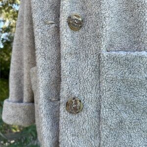 Cozy and chic teddy jacket. Features large buttons and front pockets. Ideal for layering.