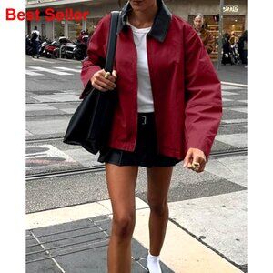 Oversized Barn Jacket Lightweight Zip Up Collar Casual Streetwear