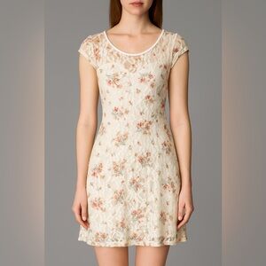 Kimchi Blue Floral Cream Lace Vintage Inspired Mini Dress with Sweetheart Neck