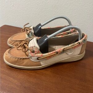 Sperry Angelfish Tan & Seaweed Print Boat Shoes Loafers Women's Size 10