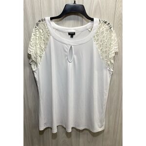 TORRID Women's (Size 2) Short Lace Sleeve Keyhole Round Neck Shirt Stretch