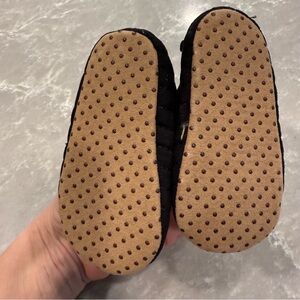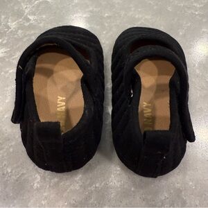 Old Navy mary jane shoes black velvet quilted velcro strap rounded toe dotted sole grips pull tab size 6-12M EUC excellent condition girls infant play casual comfortable cute feminine no tags spot clean timeless adorable