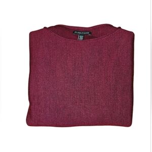 Eileen Fisher 100% Merino Wool Burgundy Tunic Sweater XS