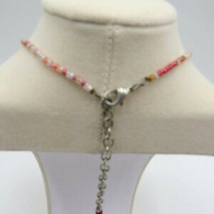 Colorful and lightweight necklace featuring multicolor glass beads and a flower pendant. Adjustable chain for a custom fit. Easy to pair with outfits.