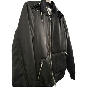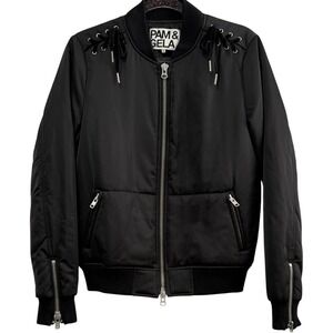 PAM & GELA Black Velvet Lace Up Corset Style Bomber Moto Jacket Medium