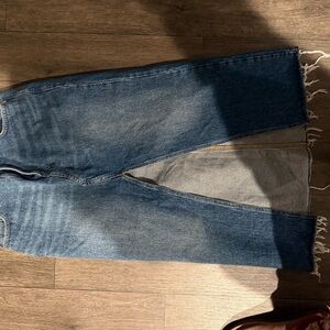 This skirt has a distressed hem The first model does not show distressed him, but the second one does