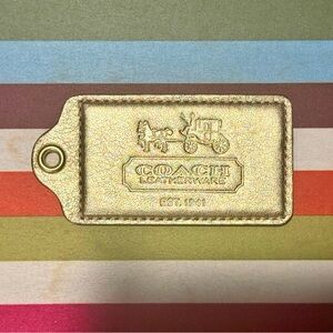 A refined expression of Coach heritage, this champagne gold metallic leather hangtag features the iconic Horse & Carriage motif with “Coach Leatherware Est. 1941” embossed at center.