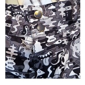 Nike Red Label Graphic Doodle Camo Board Shorts Size 34 with Zip Pocket. Closure is Velcro along with 2 Snaps and a Drawstring. Material is 100% Polyester.