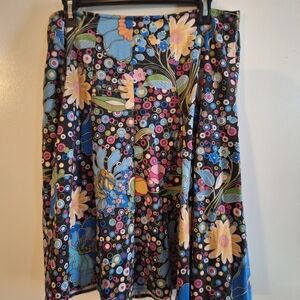 Lauren Max Black Flared Skirt With Colorful Flowers