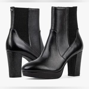 Donald J Pliner Black Platform Leather Boots,Zipper closure,Wrapped Block heel.NWOT