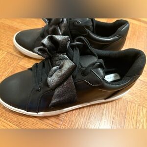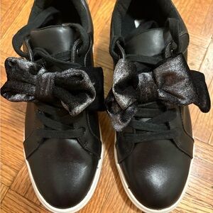 NWT SAKS FIFTH AVENUE sneakers Black leather with bows Brand new without box