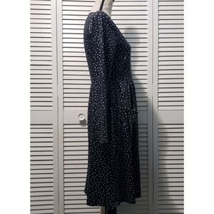 Kilig Polka-dot Midi Dress Women's Black Medium Long Sleeve Faux Button Pockets