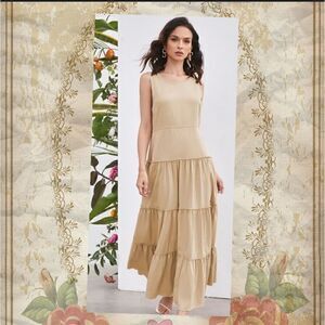 HOSTESS PICK! Women's Maxi Dress Scoop Neck with Layered Hem Size Large NWOT