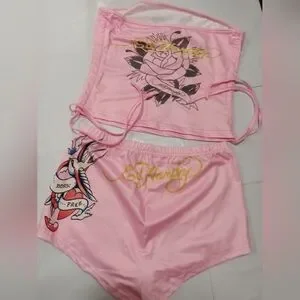 Brand New Pink Graphic Tube Top and Shorts Set