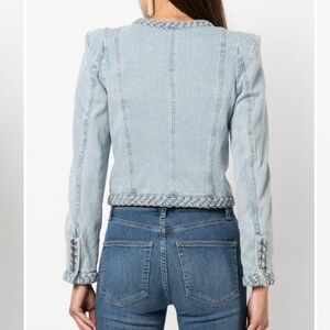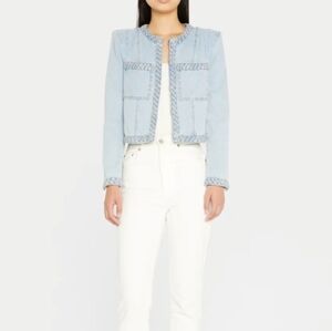 Veronica Beard Arrowe Cropped Chambray Jacket with Braided Trim