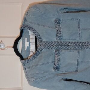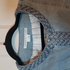 Meet the Arrowe Jacket from Veronica Beard, the must-have denim jacket this summer. In relaxed chambray with braided trims, this open-front style also features strong shoulders—adding edge and style to any look. A welcome update to your closet, wear it over your casual dresses for instant chic.