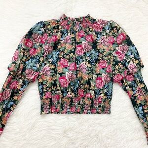 WAYF dutchess smoked puff sleeve floral print top. Great condition. Size S.
