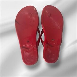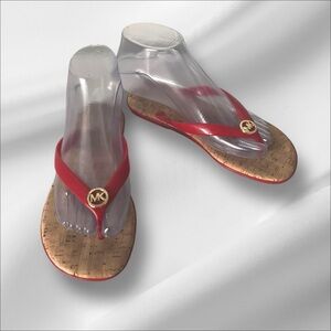 Michael Kors Red Jelly Cork Thong Flip Flops SZ 6 Women Summer Sandal Beach