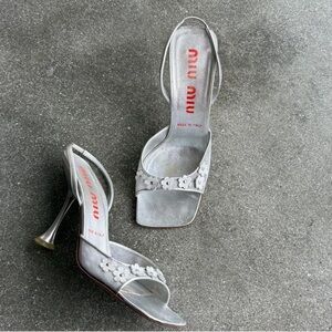 Miu Miu Silver Floral Heels