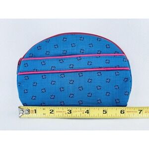 Vintage Lillian‎ Vernon Cosmetic Makeup Bag Blue Pink Floral 1980's Retro