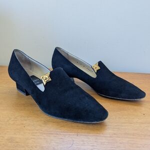 Vintage Black Suede Loafers With Gold Corner Accents