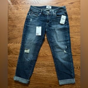 NWT PAIGE Jimmy Jimmy Crop Blue Denim Jeans Distressed Kendall Stretch 24