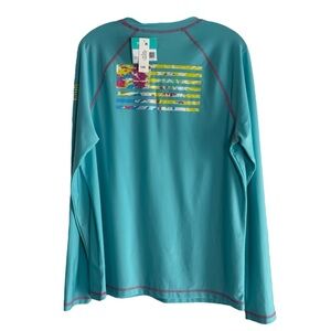 CROWN & IVY Men’s Cabana 50+ UPF Rashguard Shirt in Teal Size Medium -- NWT