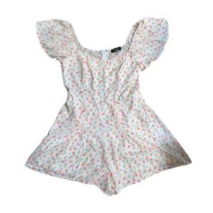 Trixxi Clothing Company white short romper pink orange yellow flowers cap sleeves, M.