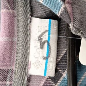 Stylish plaid button-up top for women, featuring a blend of pink, blue, and brown colors. Perfect for casual outings.