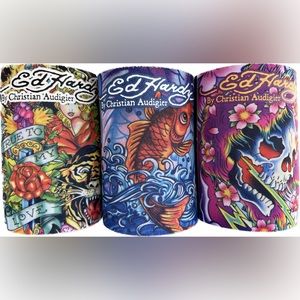 Ed Hardy By Christian Audigier Beverage Cooler Tattoo 3 pc Koozie set