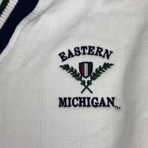 Vintage Eastern Michigan Sweatshirt Mens XL White Varsity V Neck Gear for Sports.