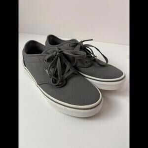 Step up your child's sneaker game with the Grade School Vans Atwood 'Pewter' . These stylish sneakers feature a sleek Pewter colorway, showcasing a classic low-top design perfect for school or play. Crafted with durable canvas and a comfortable padded collar, they offer both style and support. The signature rubber waffle outsole ensures superior grip and durability. Perfect for everyday wear, these Vans Atwood sneakers will keep your child looking cool and feeling comfortable all day long. Size US 4 youth, excellent condition, no flaws.