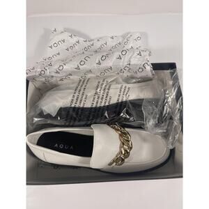 Aqua Lena Shoes Women's Size 9.5 Bone Lizard White Loafer Gold Chain New Boxed