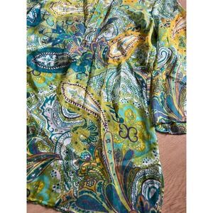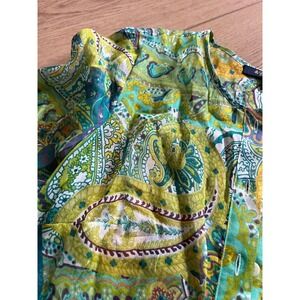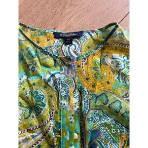 Brooks Brothers Womens Paisley Print Tunic Top XS Green Blue Yellow